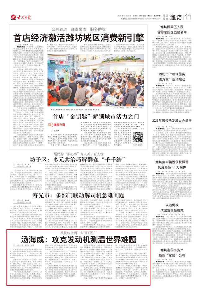 依托这些精准的测量数据,潍柴发动机性能实现了持续优化。汤海威牵头的《内燃机高温运动件动态测量技术研究及应用》项目,荣获中国机械工业科技进步一等奖。这项被中国内燃机学会评定为“国际先进水平”的技术,每年为潍柴节约费用3200余万元。