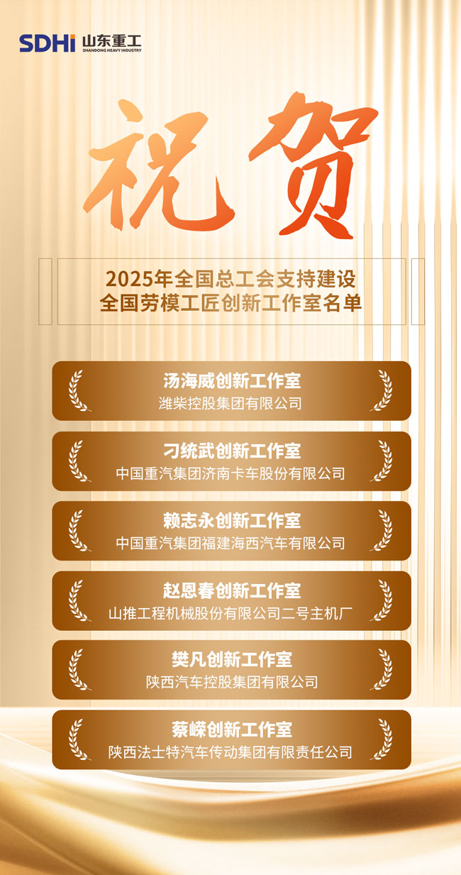 近日,中华全国总工会办公厅印发《关于公布2025年全国总工会支持建设全国劳模工匠创新工作室名单的通知》,公布了2025年度获全国总工会支持建设的劳模工匠创新工作室名单。山东重工集团6家劳模工匠创新工作室成功入选。