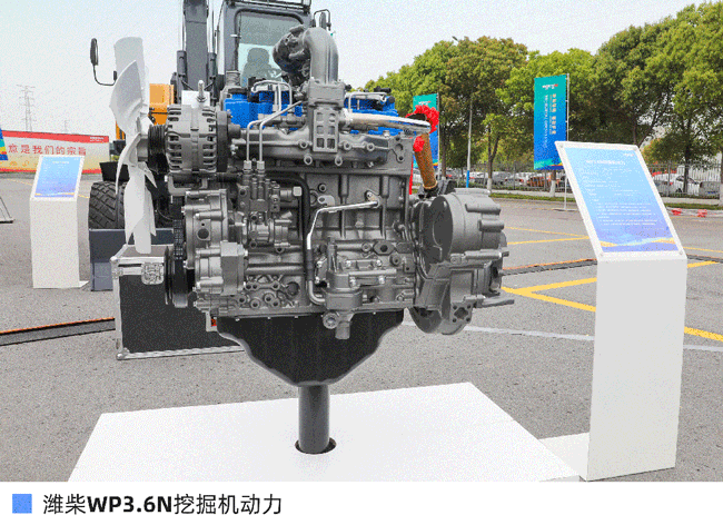 作为本次发布的核心产品之一,WP3.6N挖掘机动力功率覆盖48-92kW,最大扭矩500N·m,低速扭矩大,经济性优;标配两级燃油滤、电动泵油,油品适应性强;选配液压换向风扇,有效清除散热器表面杂物,解决高温难题,整车作业更高效;多取力口设计,最大输出扭矩达300N·m;采用燃烧预喷技术及高精度啮合传动轮系,发动机振动噪音低。