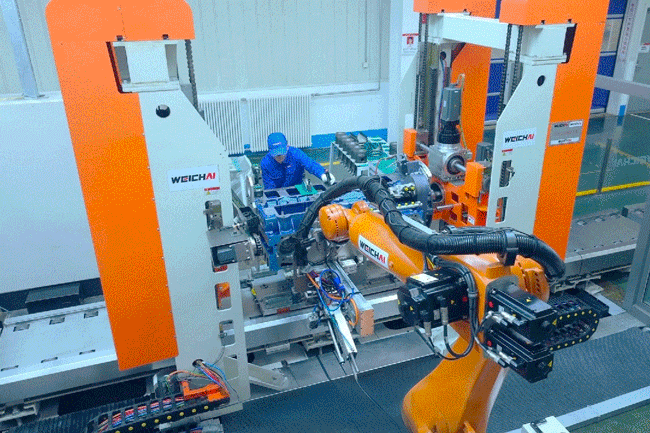 这背后是潍柴十年磨一剑的坚守与创新。潍柴历经数年攻坚,打破300吨级矿卡动力领域的技术壁垒,成功开发出性能优越的12M55发动机。其核心系统全面自主可控:自主ECU软件可按需优化定制,超高压共轨闭环控制系统实现燃油精准控制,协同产业链构建起自主可控供应链体系。